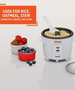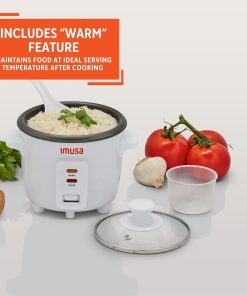 EFFICIENT OPERATION: It has a ceramic non-stick coating that makes it easy to release food, a warm function that keeps the right temperature for serving, and a serving spoon and measuring cup for extra convenience.