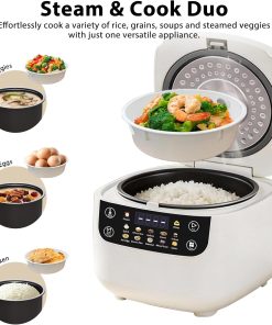 【Versatile Cooking】 More than just a rice cooker—steam vegetables in the basket while the inner pot cooks rice or simmers soup. The 24-hour delay timer lets you wake up to warm oatmeal or come home to freshly cooked rice, no last-minute prep needed.