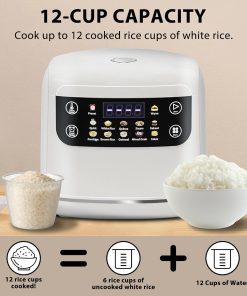 Portable Digital Rice Cooker, 6-Cup (Uncooked)/12-Cup (Cooked) Small Rice Maker with Steaming Basket, Mini Rice Cooker with 2L Removable Nonstick Inner Pot, 10 Menu Options, Auto Keep Warm, 24 Hour Delay Timer, White